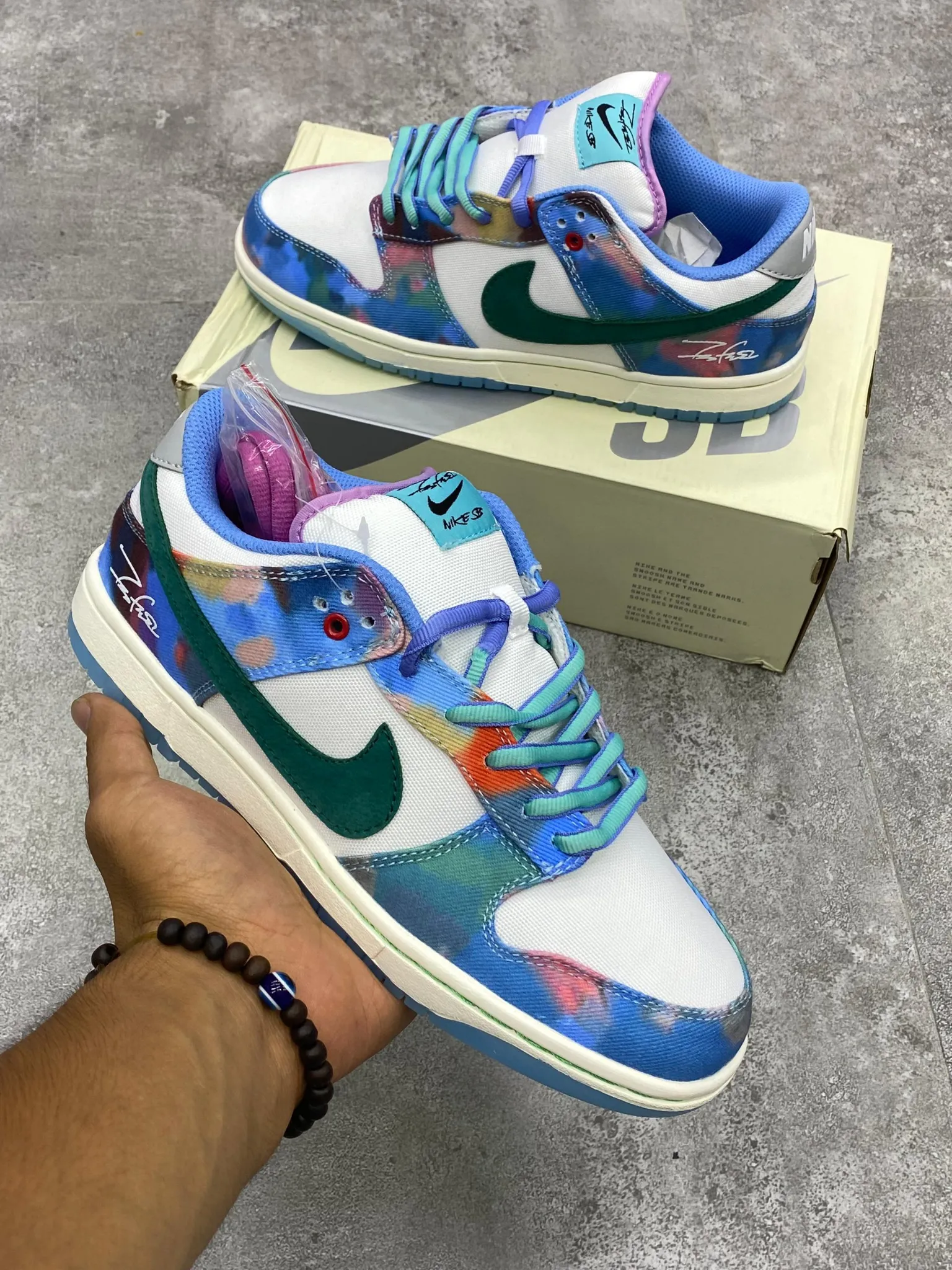 طراحی کلی کفش برگرفته از مدل کلاسیک دانک است، اما جزئیات خاص Futura آن را متمایز کرده است. زبانه ضخیم و پد شده، محافظت خوبی از روی پا ایجاد میکند. بخش پاشنه نیز پد گذاری شده تا راحتی بیشتری فراهم شود.