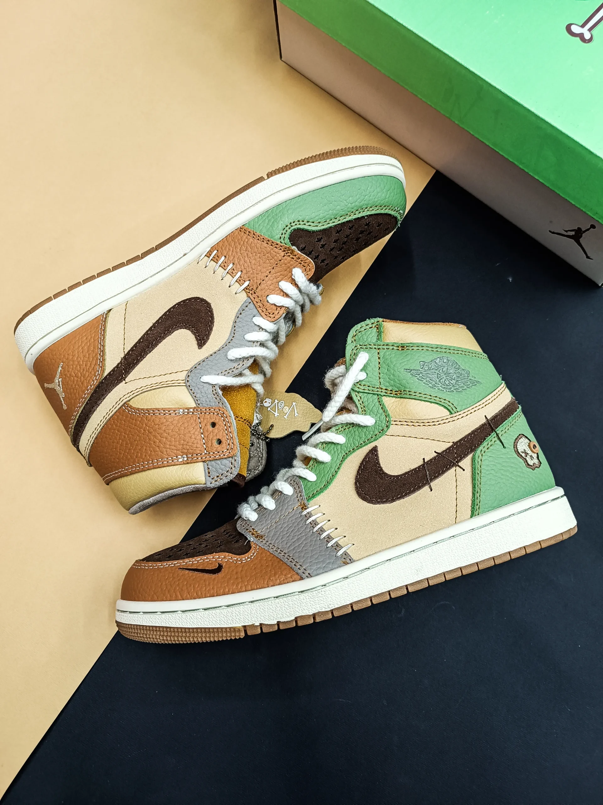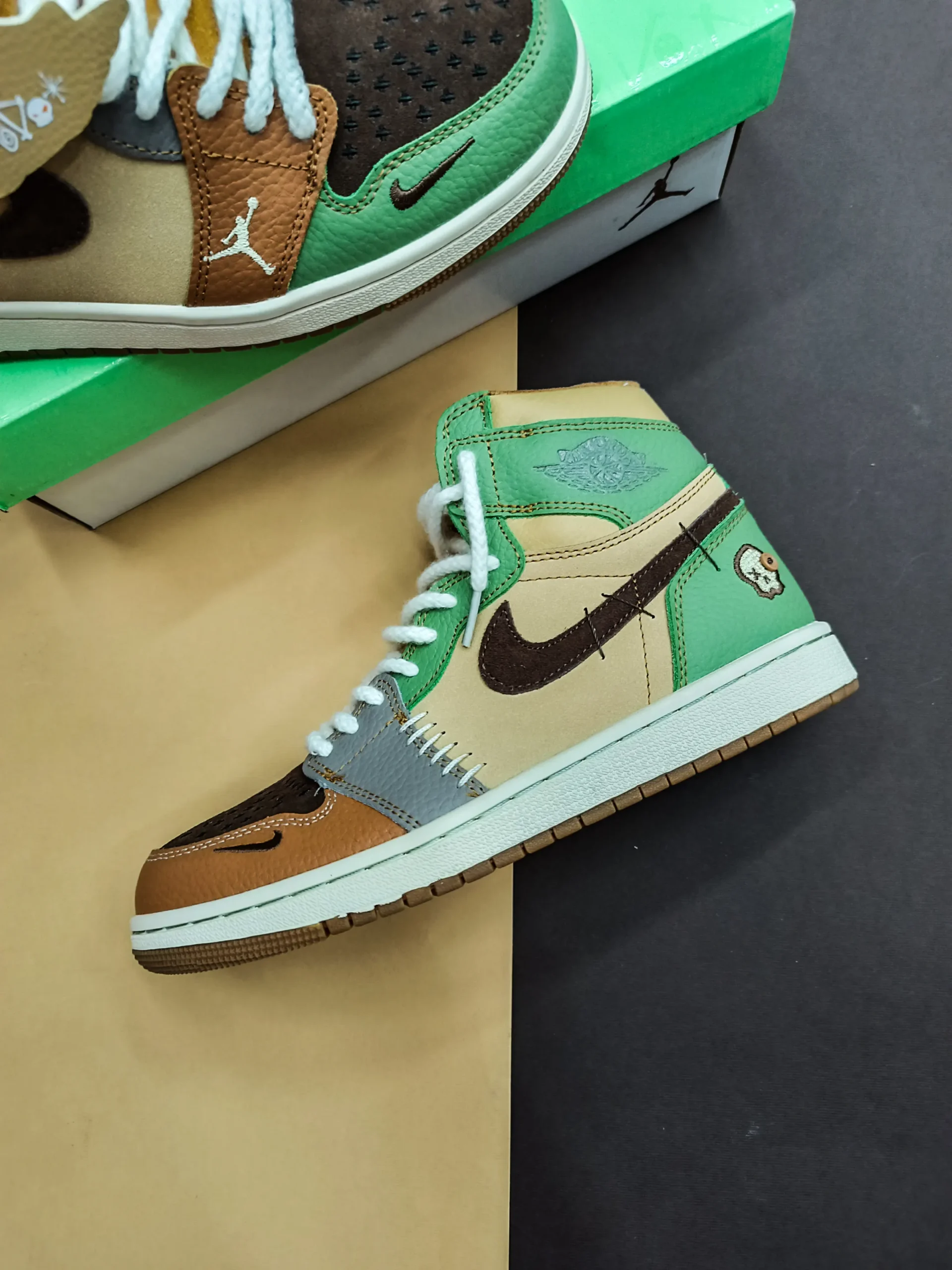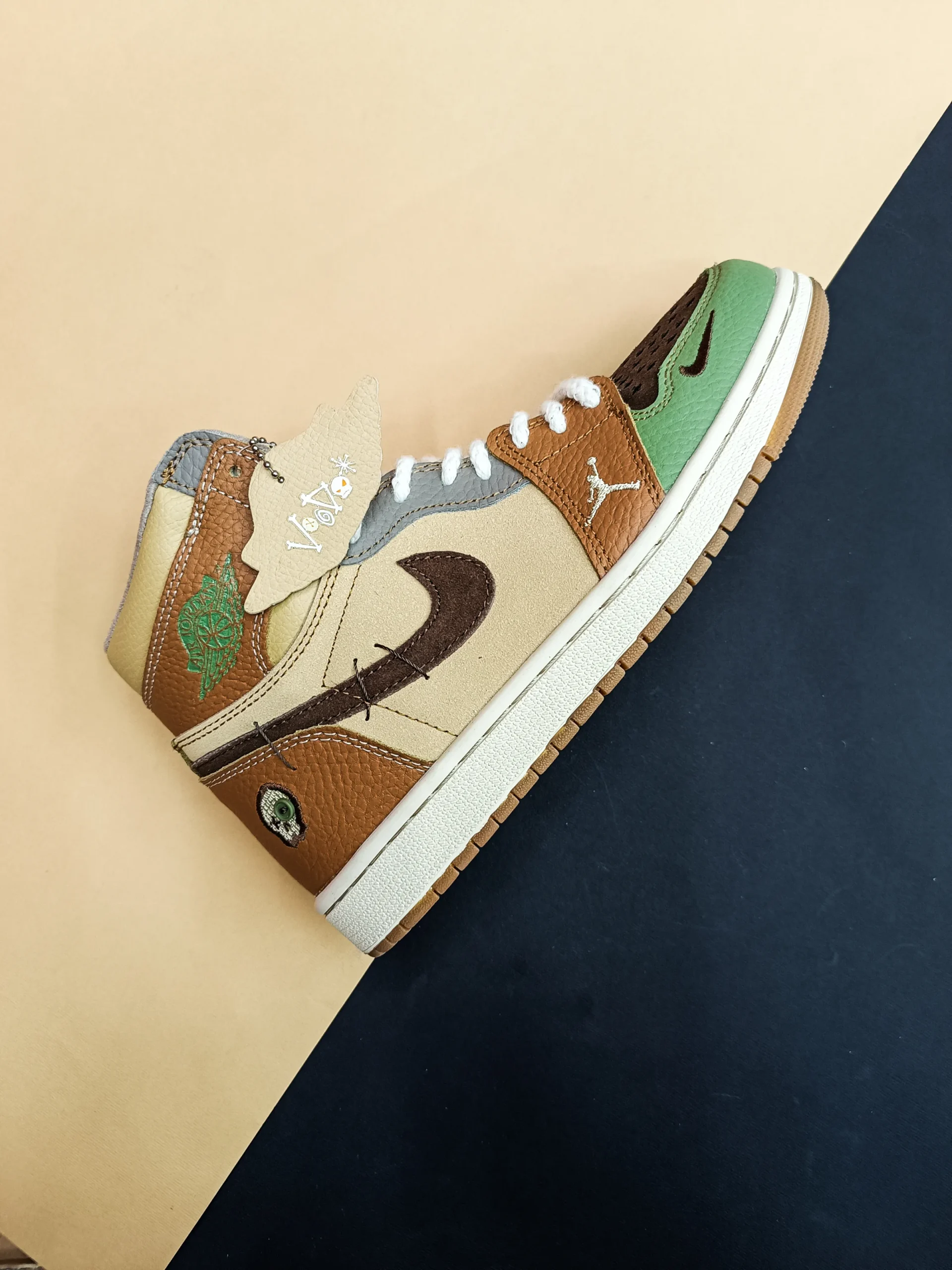 جردن 1 ساقدار وودو با طراحی منحصر به فرد، الهام گرفته از فرهنگ وودو است. رنگ زیبای آن با جزئیات زرد و سبز و نارنجی ترکیب شده و ظاهری چشمنواز ایجاد کرده است. بافتهای مختلف در رویه، عمق بصری جالبی به کفش میدهد.