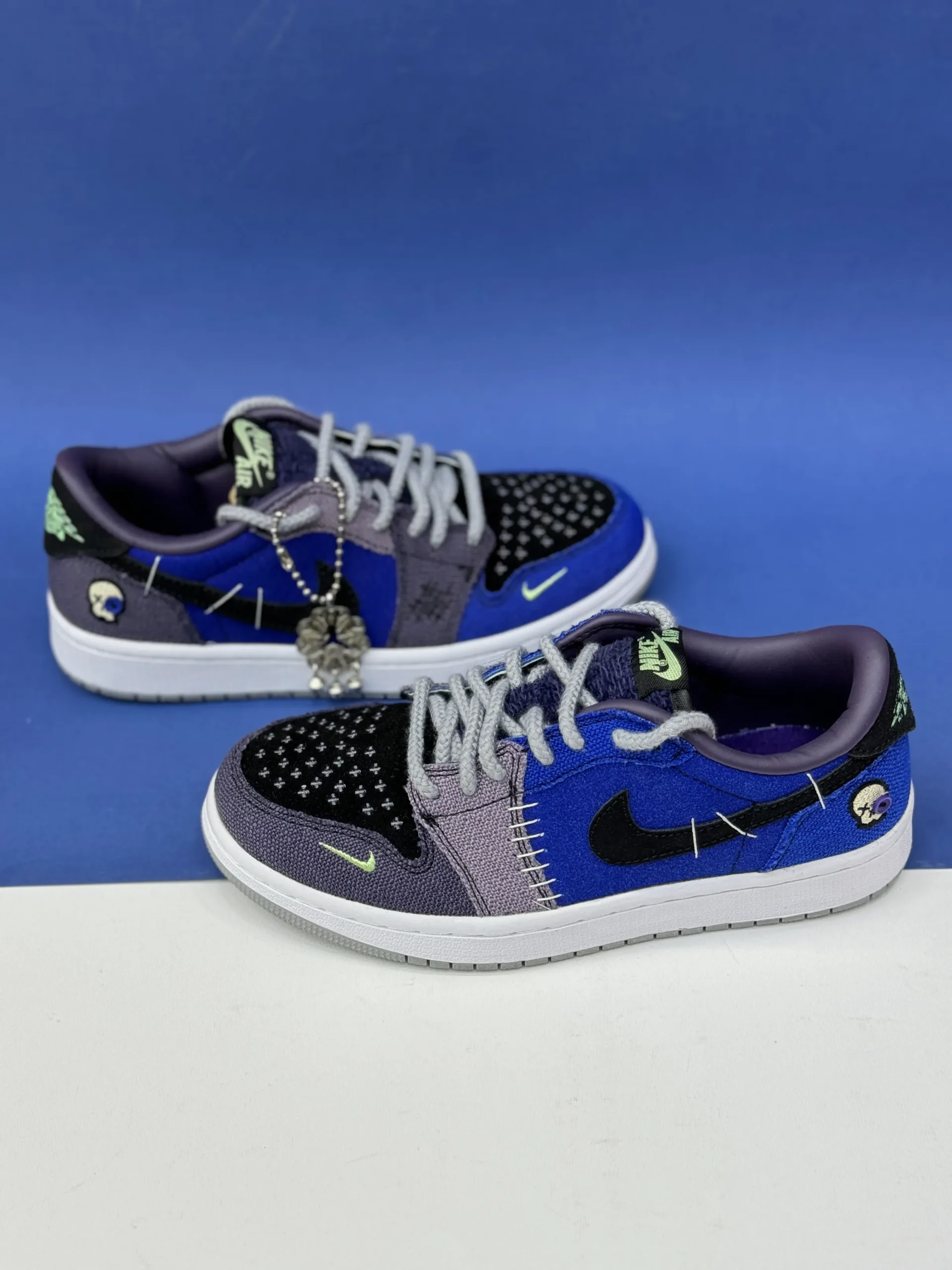 کتونی جردن 1 بدون ساق وودو رنگ آبی با کیفیت مستر همراه با باکس مخصوص و بند اضافه