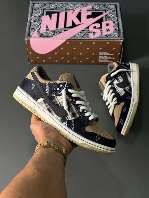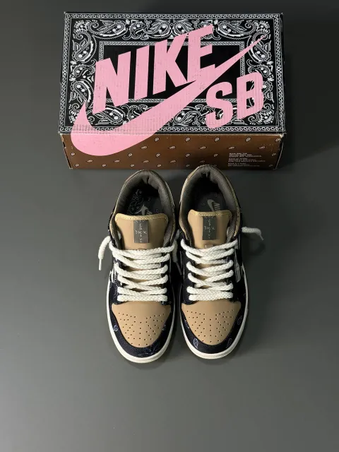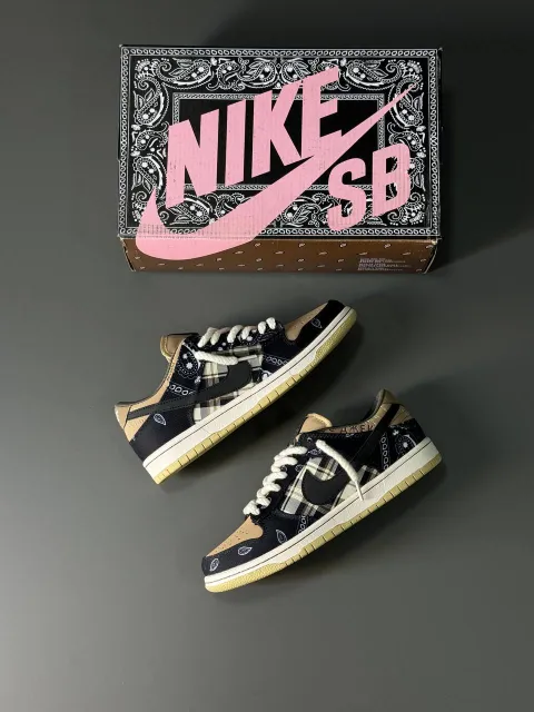 کتونی نایکی اس بی باندانا (Nike SB Dunk Low “Bandana”) نتیجه همکاری ویژه نایکی SB با ترویس اسکات، رپر معروف، هست که با طراحی الهامگرفته از الگوهای بندانا، مثل یه اثر هنری خیابونی تو دنیای اسنیکره میدرخشه.