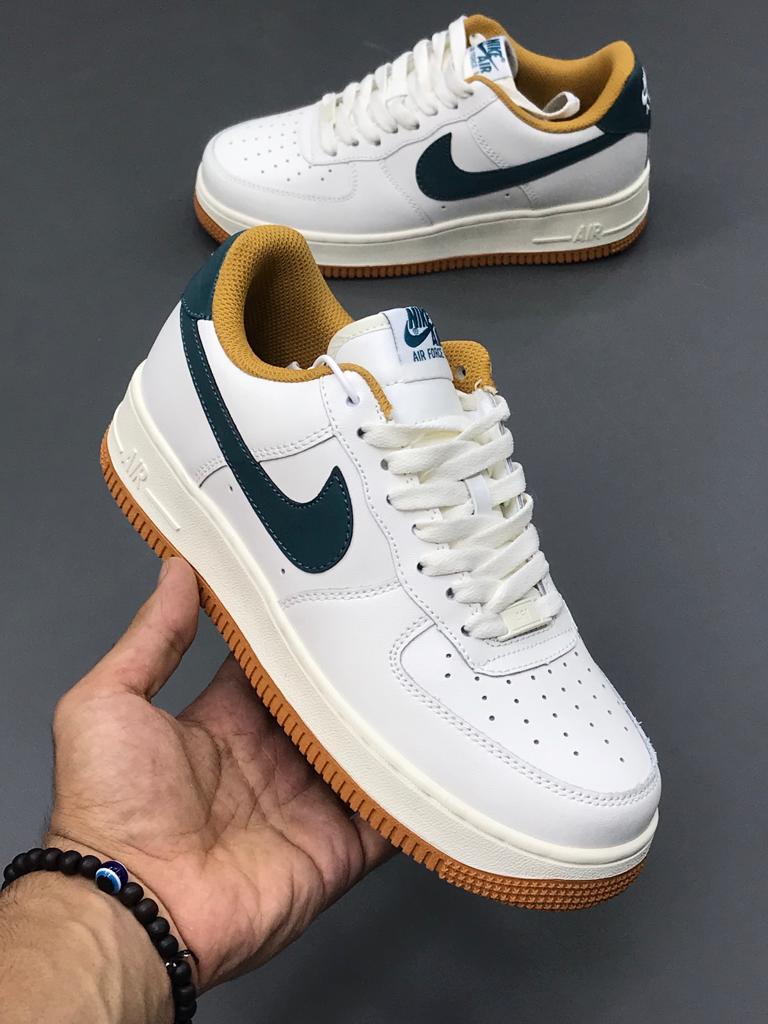 رویه این کتونی از چرم باکیفیت و مش تنفسپذیر ساخته شده که دوام و راحتی را تضمین میکند. رنگ سبز تیره با لوگوی زرد و زیره سفید، کنتراست چشمنوازی ایجاد کرده است. فناوری Air در زیره میانی، ضربهگیری و پشتیبانی فوقالعادهای برای پاها فراهم میکند. زیره لاستیکی مقاوم، چسبندگی عالی روی سطوح مختلف دارد. لوگوی Swoosh و طراحی مینیمال، اصالت ایرفورس را به نمایش میگذارد.