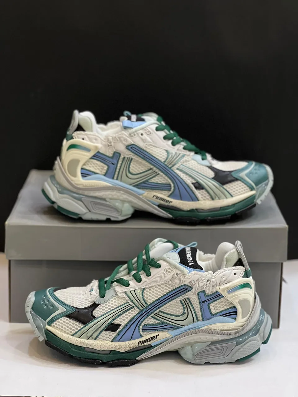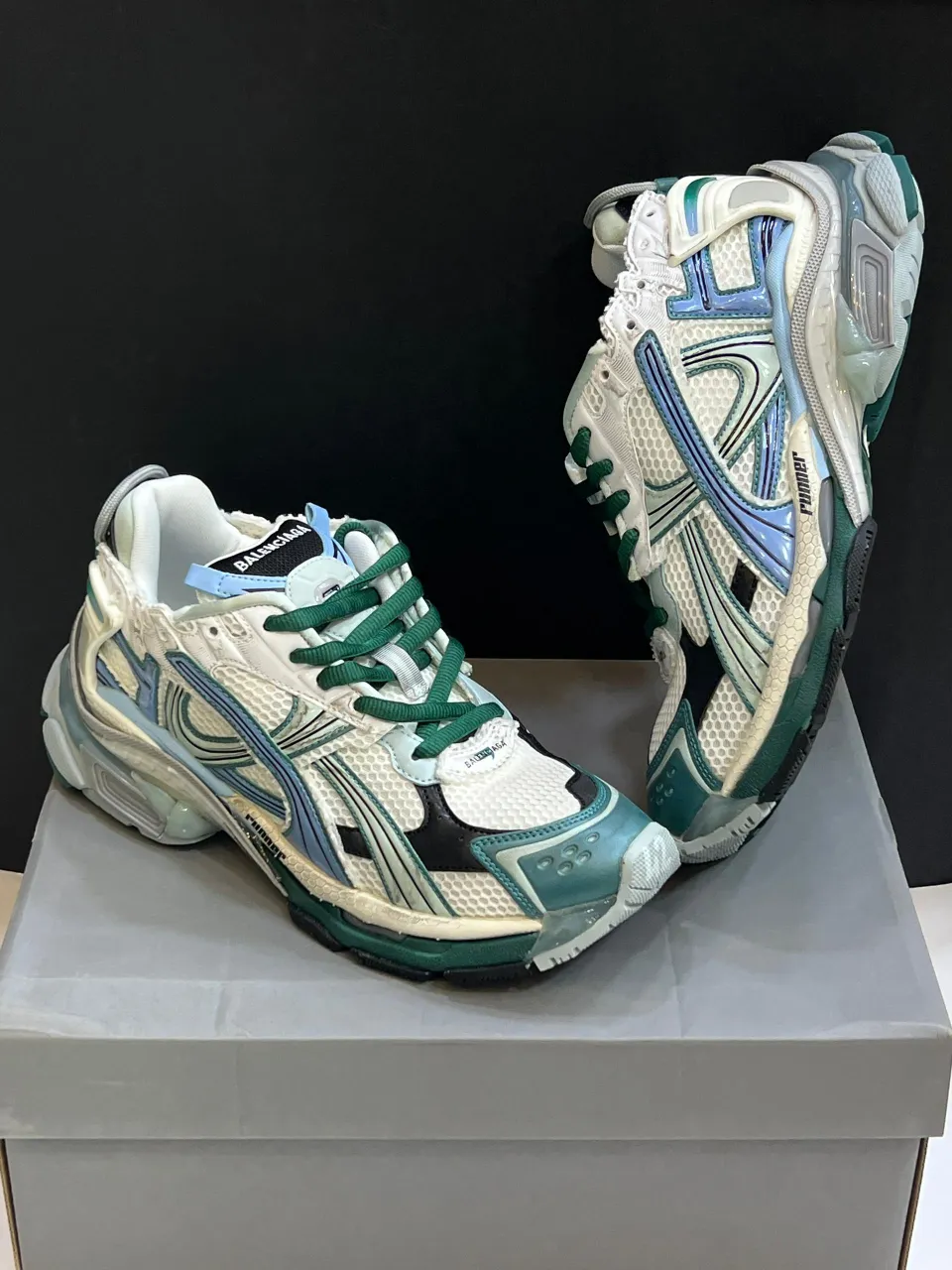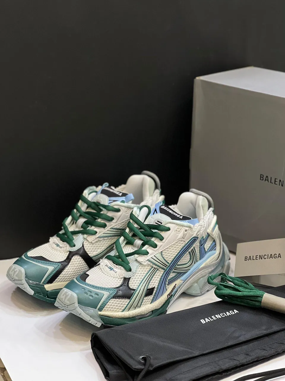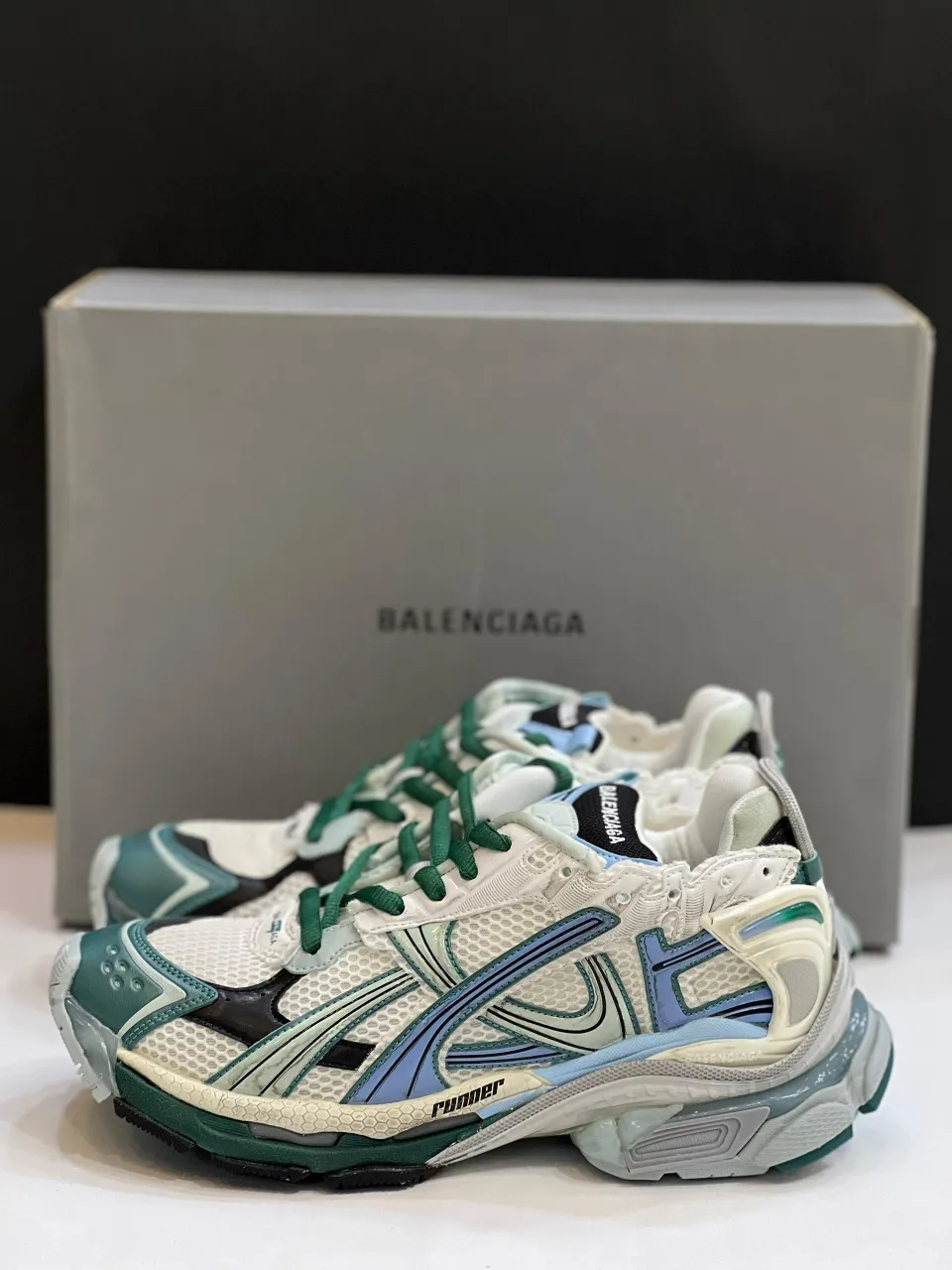 بالنسیاگا رانر وایت گرین بلو، بخشی از خط تولید رانر هست که تو 2019 توسط کریستوف دمن (Demna Gvasalia) طراحی شد و با ترکیب مد خیابونی و هنر گرافیتی، حسابی سر و صدا کرد. اطلاعات دقیق تاریخ عرضه نسخه وایت گرین بلو محدود هست، ولی با توجه به محبوبیتش، تو بازار ثانویه قیمتش گاهی به 1200 دلار یا بیشتر میرسه.
