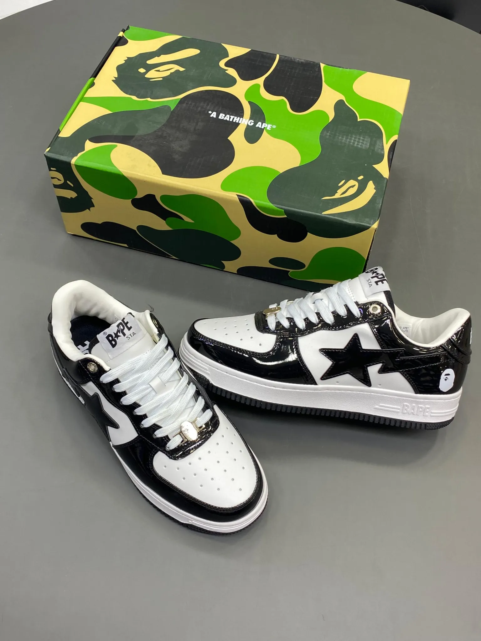 بیپستا، یکی از مشهورترین کتونیهای برند ژاپنی A Bathing Ape است. این مدل خاص با ترکیب رنگی مشکی و سفید، یک انتخاب کلاسیک و شیک محسوب میشود. طراحی آن الهام گرفته از نایک ایر فورس ۱ است، اما با هویتی کاملاً متمایز.