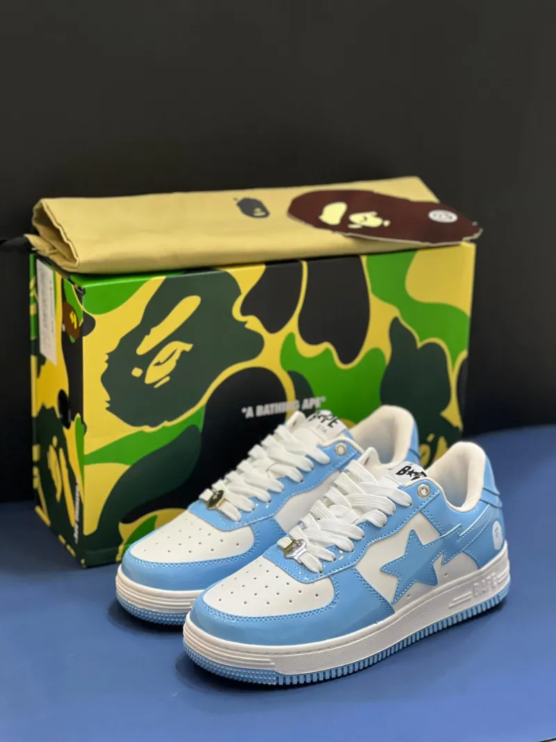 بیپ استا اسکای بلو بخشی از خط تولید کلاسیک Bape هست که از سال 2002 با الهام از Nike Air Force 1 طراحی شده و با لوگوی ستارهای بهجای Swoosh شناخته میشه. این مدل با رنگهای پرانرژی مثل اسکای بلو، اغلب بهعنوان نمادی از استایلهای خیابونی ژاپنی دیده میشه. با قیمت اولیه حدود 200 تا 250 دلار (بسته به نسخه) تو فروشگاههای Bape و وبسایت رسمی عرضه شده. نایابی و طراحی خاص، باعث شده تو بازار ثانویه قیمتش گاهی به 350 دلار یا بیشتر برسه.