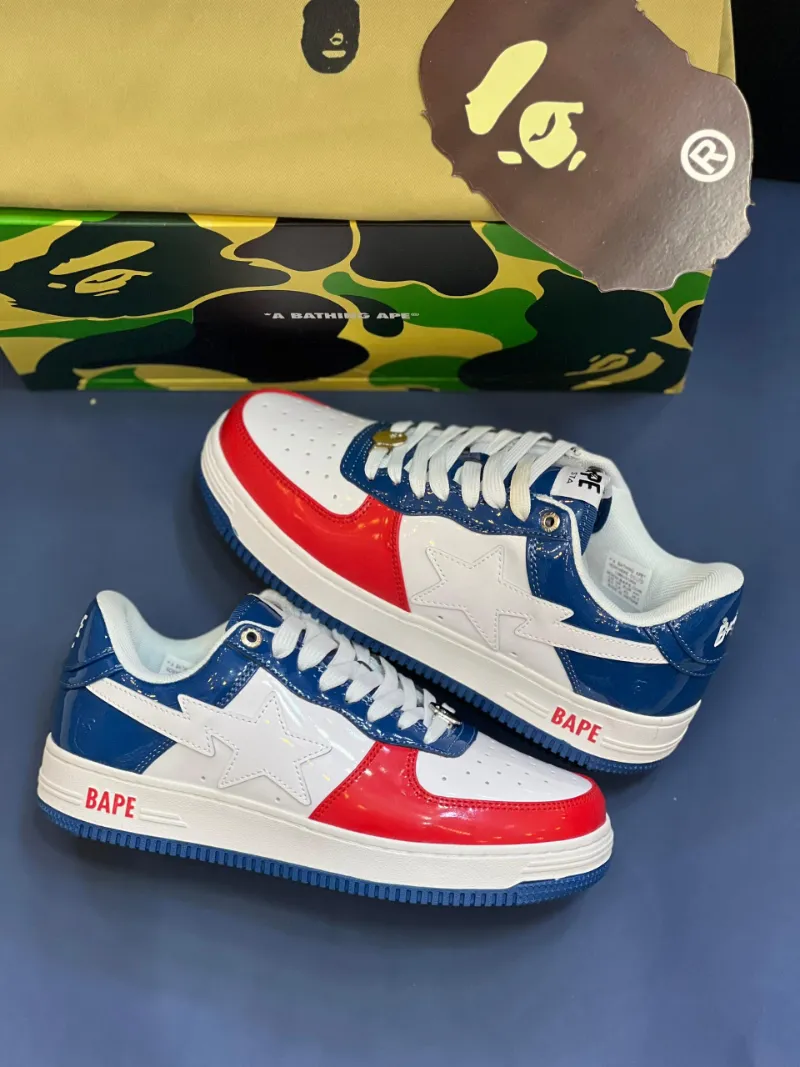 کتونی بیپ A Bathing Ape Bapesta در رنگ وایت بلو رد (A Bathing Ape Bapesta White Blue Red) یکی از مدلهای برجسته و محبوب برند ژاپنی A Bathing Ape هست که با طراحی الهامگرفته از فرهنگ خیابونی و ترکیب رنگهای پرچممانند، مثل یه اثر هنری پرانرژی تو دنیای اسنیکره میدرخشه. این مدل که بخشی از خط تولید کلاسیک Bapesta محسوب میشه، با استایل جسورانه و لوکس، طرفدارای زیادی داره.