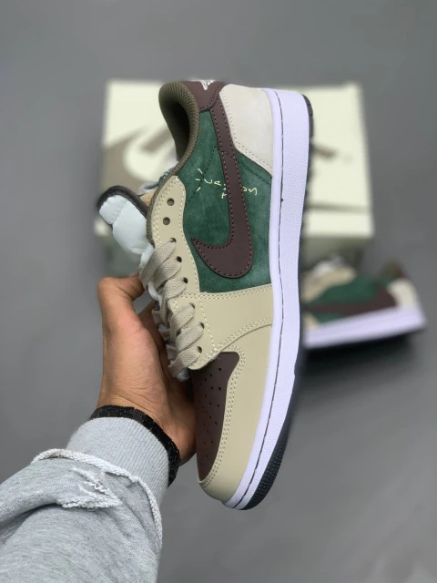 کتونی جردن ۱ لو ترویس اسکات فرگمنت، نتیجه همکاری سهگانه نایکی، ترویس اسکات و فرگمنت دیزاین است. این مدل در سال ۲۰۲۱ معرفی شد و به سرعت به یکی از محبوبترین کفشهای خیابانی تبدیل شد. رنگبندی سبز،قهوه ای و کرمی، آن را به اثری خاص و کلکسیونی بدل کرده است. برای عاشقان استایل خیابانی و طرفداران ترویس، این کتونی یک شاهکار بینظیر است.