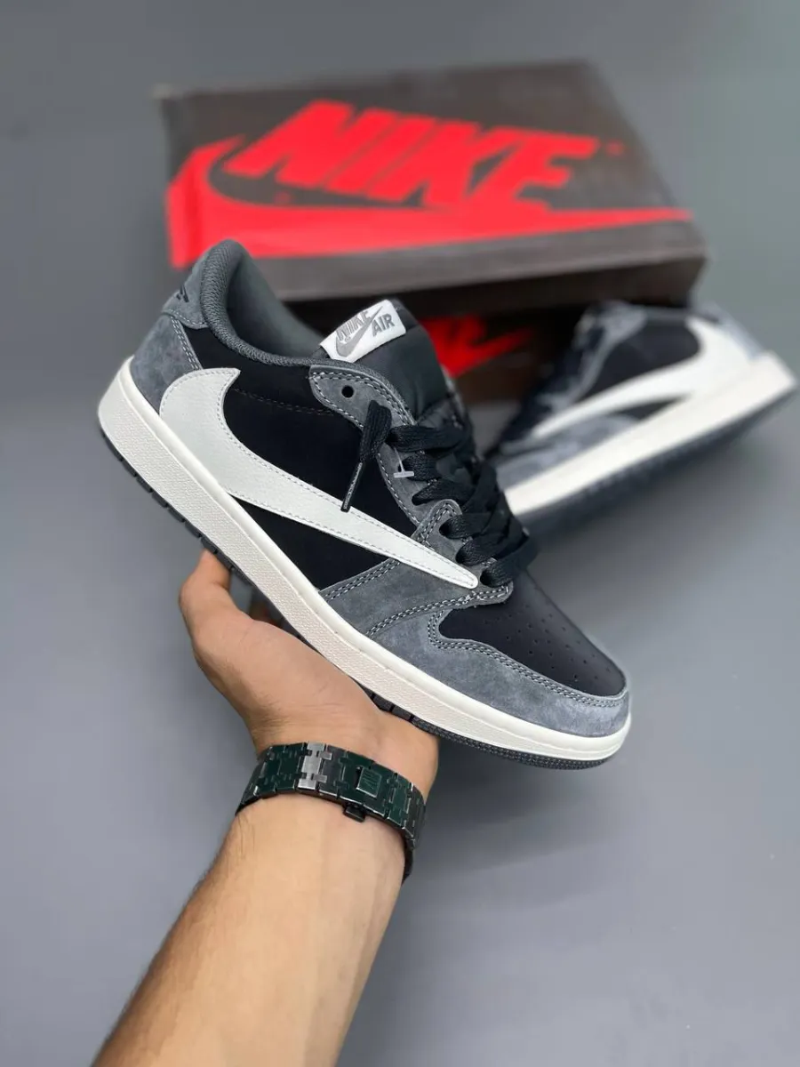 کتونی نایکی جردن 1 لـو ترویس اسکات خاکستری، سایهای از استایل خیابونی