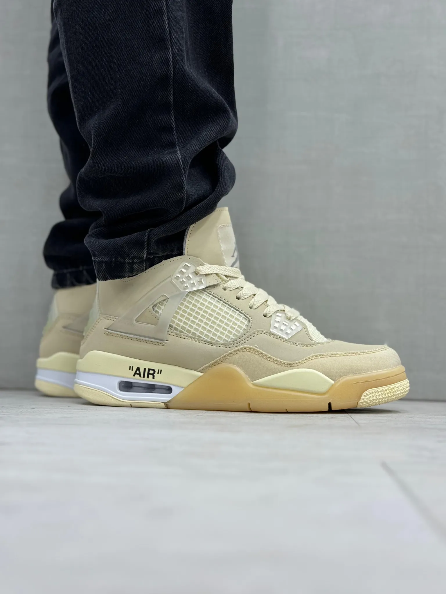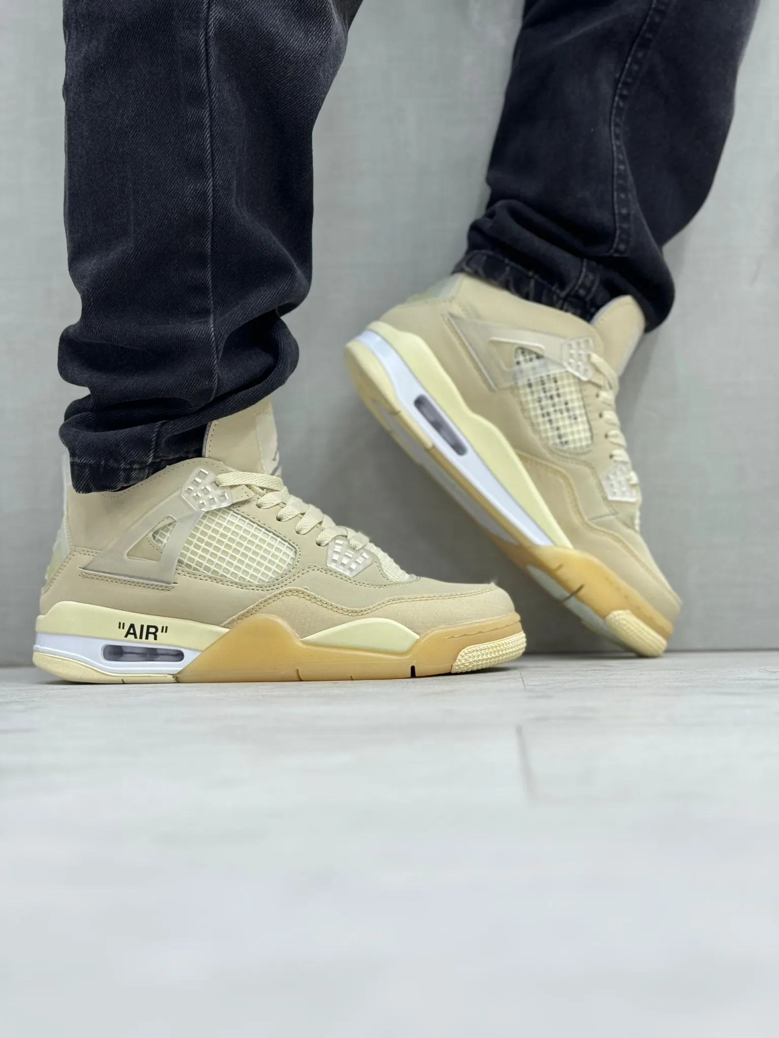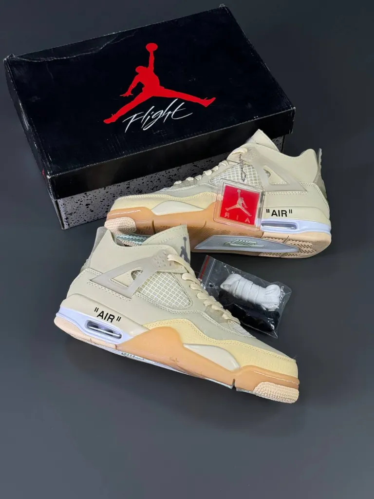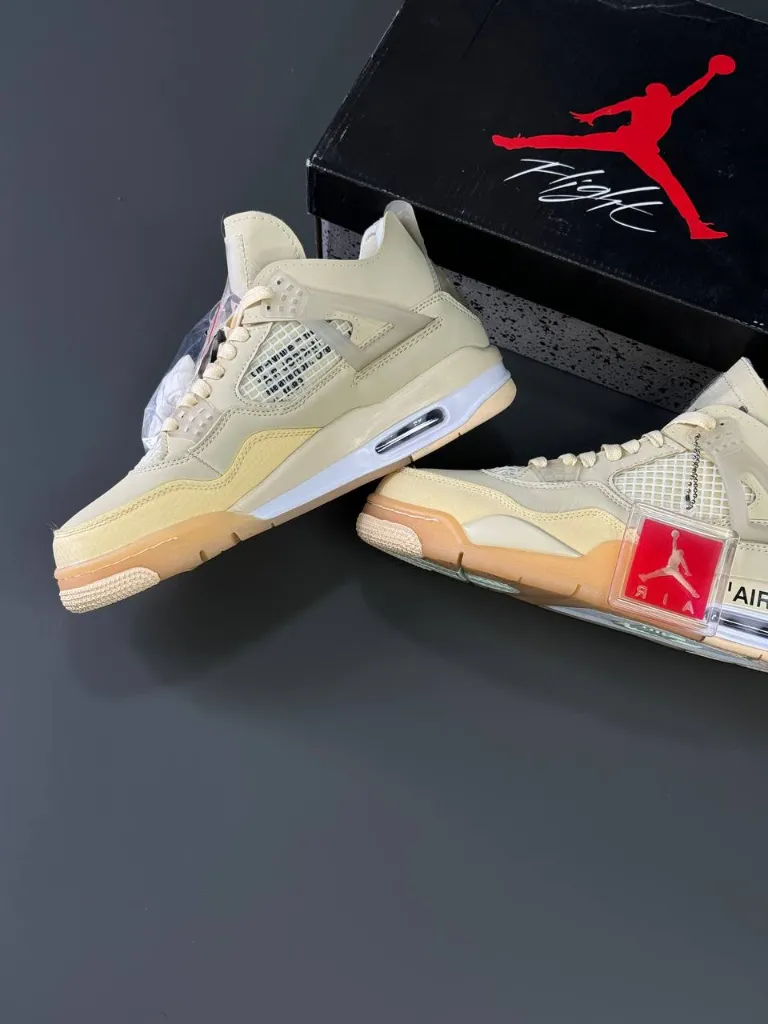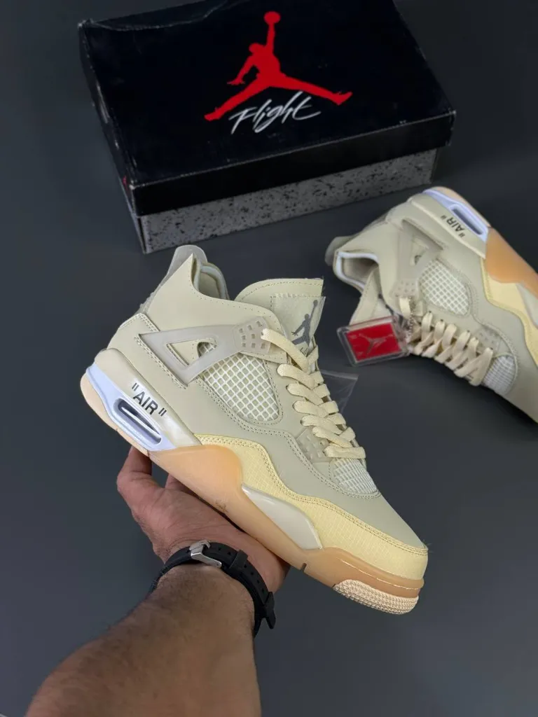 ایرجردن 4 Off White یکی از محبوبترین و خاصترین مدلهای این سری است. همکاری نایک با برند Off White، منجر به خلق این شاهکار شده است. رنگ کرمی ملایم با جزئیات منحصر به فرد، ظاهری چشمنواز به آن بخشیده است.